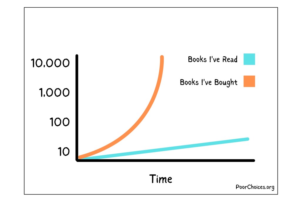 The problem is I’ve been buying books faster than I can read them for as long as I can remember. Here’s some super accurate and totally verifiable scientific data I’ve compiled on the problem: